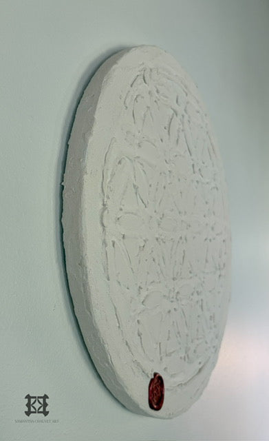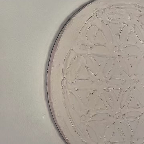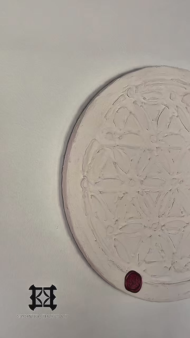 The intricate sacred geometry pattern is hand-textured into the surface, creating depth and dimension that shifts beautifully with light. Each piece is a testament to resilience, faith, and the beauty of becoming.