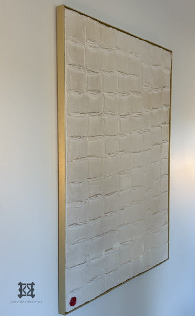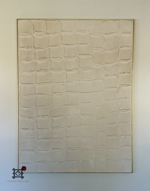 Inspired by the sacred Western Wall in Jerusalem, this textured work embodies strength, endurance, and unwavering faith. Each formed section represents the walls we build within ourselves — layers of fear, doubt, and limitation that can seem unbreakable.